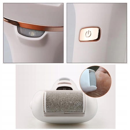 Elektryczny pilnik do stóp posiada obrotowe głowice pokryte drobinkami kryształów, które delikatnie i zdecydowanie usuwają ze skóry martwy, zrogowaciały naskórek.