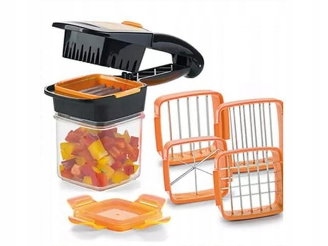 Zawarte w zestawie ostrza pokroją produkty na grube plastry, cienkie plasterki, kostki, słupki i ćwiartki.