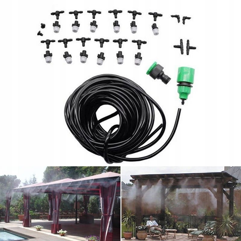 Wspaniały 10 metrowy zestaw z 10 dyszami, które idealnie ochłodzą w upalne dni i dadzą przyjemną ochłodę.