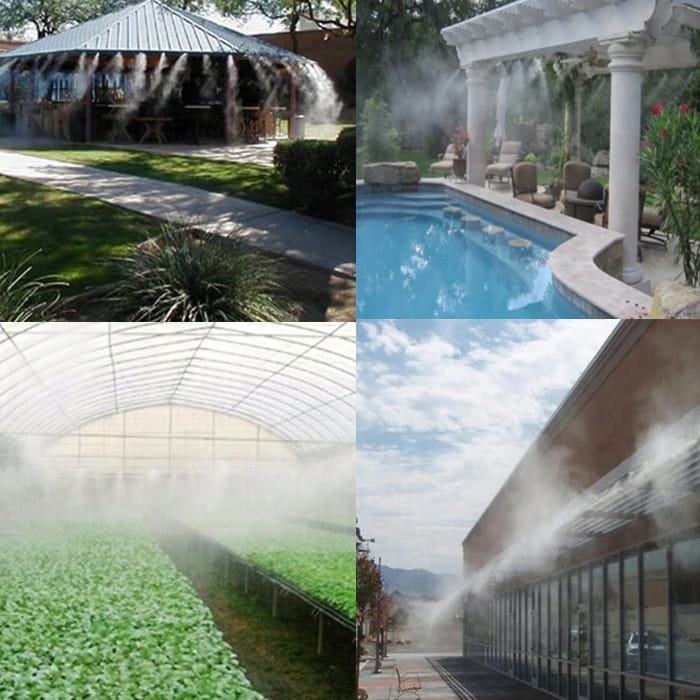 ZEROWE ZUŻYCIE ENERGII: Po prostu przyłącz kabel z wodą wodociągową, system chłodzenia mgłą automatycznie rozpyla i chłodzi, nie zużywa energii elektrycznej, oszczędzaj pieniądze i bądź ekologiczny.