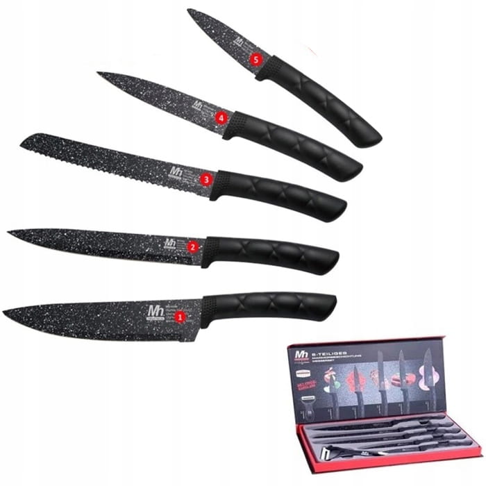 SOLIDNY ZESTAW NOŻY 6 EL NOŻE KUCHENNE MARMURKOWE