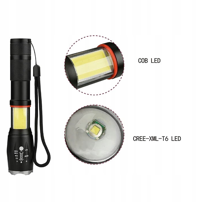 WOJSKOWA LATARKA METALOWA 2X LED T6 COB 9W-1000m